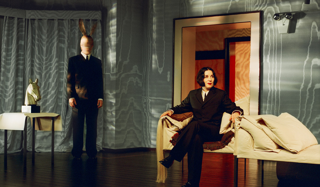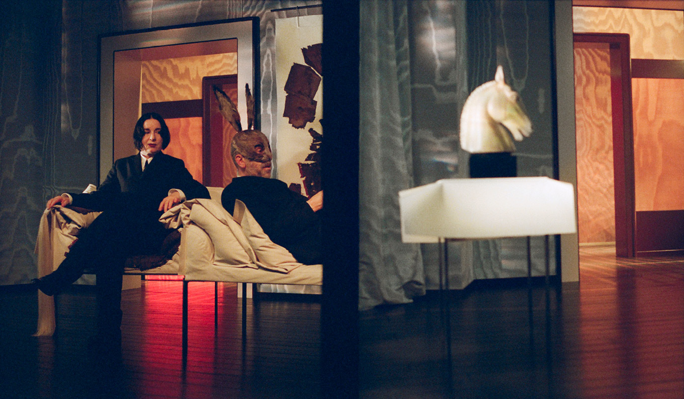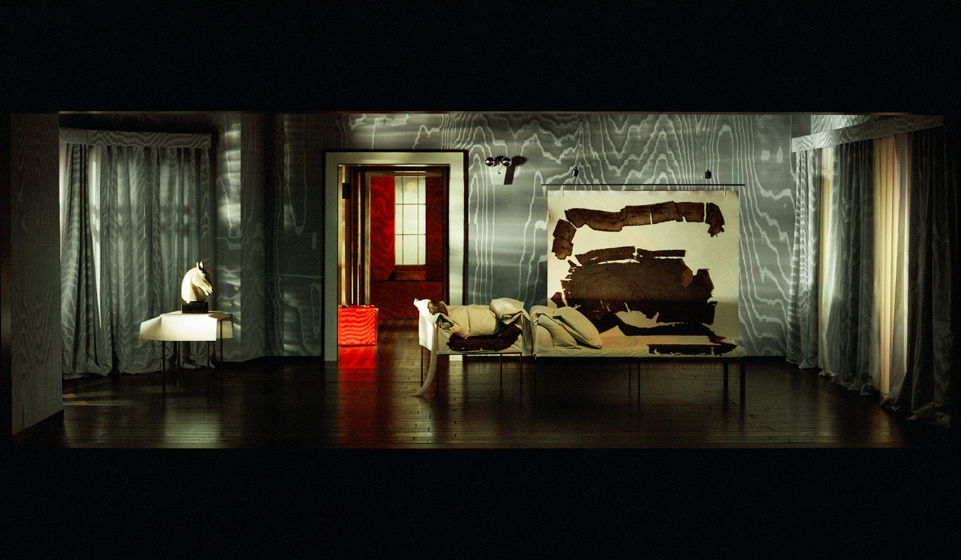 «From the very beginning, I knew I wanted to work with Dedar fabrics for this project. Initially, I was drawn to their sophisticated palette, which felt like the perfect intersection of my personal taste and a visual representation of Deborah Levy’s language. […] The moiré effect, created through heat treatment, produces organic, unpredictable patterns, making the fabrics feel almost unconscious by nature. This quality became integral to the stage design, adding depth and layers of meaning to the visual storytelling».